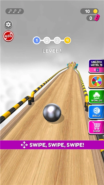玩家仅需点击屏幕就能操控球的运动:快速向前滑动,球的速度便会提升;向后滑动,球则会逐渐减速。