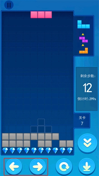 在游戏界面的左下角,你能够借助按键来控制方块进行左右移动。