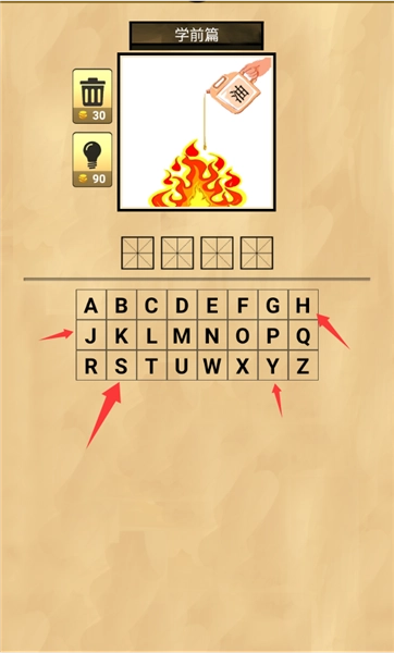 这张图对应的是“火上浇油”这个成语,只需输入文字的第一个大写字母就行。