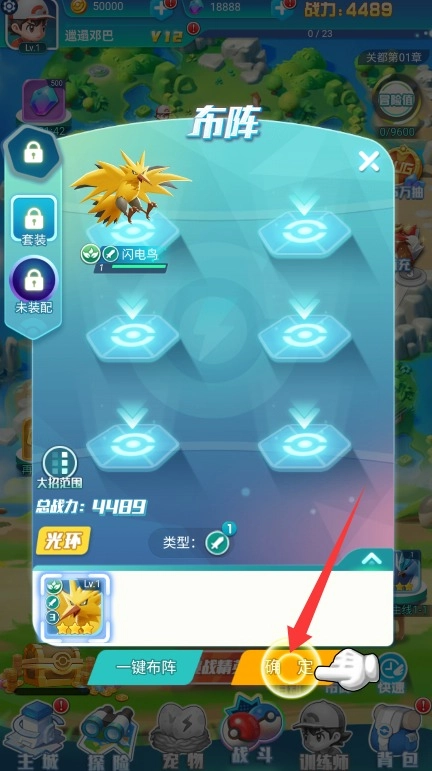 选择一键布阵系统自动优化阵容,点击确定保存配置并进入战斗准备状态。