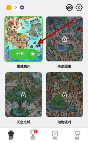 进入游戏后,在主界面挑选一个你想要挑战的关卡,开启你的冒险之旅。