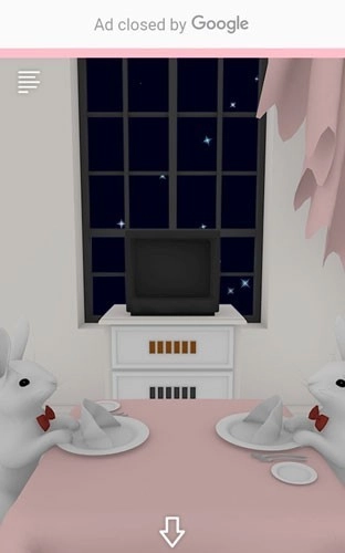 我们来到有兔子拿着热狗的柜台前,柜台上方的筷子盒里筷子是这样摆放的:在那个有两只兔子作为晚餐的地方,我们点击柜子,按照使用筷子的提示打开柜子,拿到了面包。