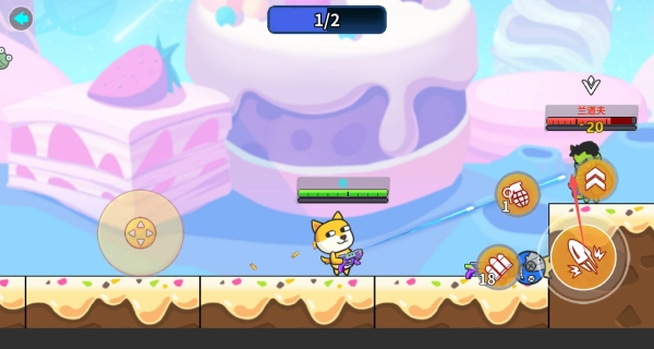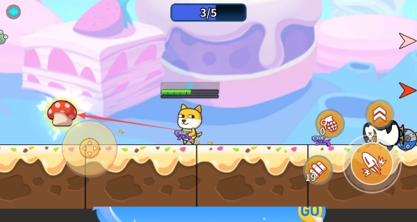 用虚拟摇杆操控狗头角色移动,滑动屏幕来调整射击方向,精准命中场景里的鸭子目标。