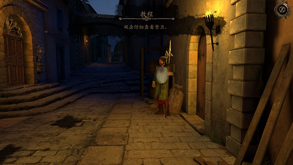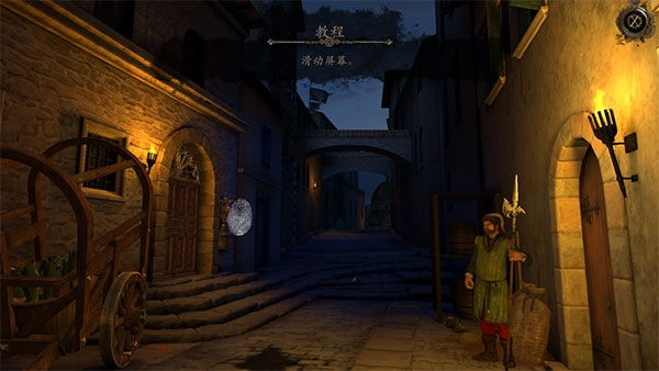 在士兵对面的门右边点击,旋转,打开获得钥匙。
