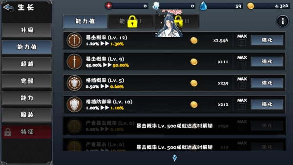 游戏里的属性类别相当丰富,总共有54种不同属性,像基础的攻击、体力、防御率一应俱全,还有更细致划分的暴击率、严重暴击率、全身暴击率、灵魂暴击率、超越暴击率等,这款游戏把诸多方面的属性都进行了细分,而在这些属性里,“防御穿透率”是最为关键的一项。