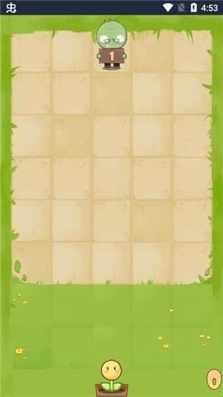 游戏开始后,玩家需将花盆里的花拖动到下方绿色草地的位置,这些花会自动对僵尸发起攻击,并且每完成一次拖动操作,花就会进行一次攻击。