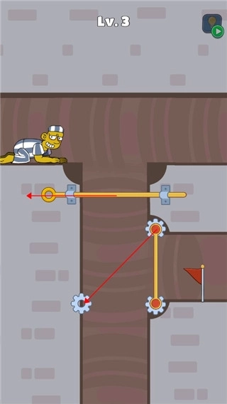 越狱大冒险是一款趣味性十足的休闲闯关类游戏,游戏中的玩法非常简单,只需要玩法动动手指滑动屏幕,操控游戏中的拉杆机关,即可帮助我们的主角快速逃离,游戏关卡是相当丰富的,而且关卡难度层层叠加,非常具有挑战性,还有岩浆、落石、鳄鱼等危险物品,感兴趣的朋友快来帮帮他吧。