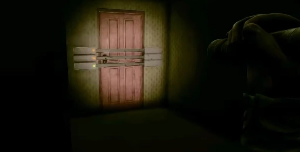 然后就是记得捡蓝色衣服尸体旁的卡,用于开出口的门。进门前需要注意的是,只要开门剥皮怪就会直接冲刺来追你,最好开门前留体力,或者吃果冻,进去以后一直跑,到尽头,左手会有按钮可以把剥皮者关外面,进入电梯就算第三关彻底通关,密码在进电梯墙上