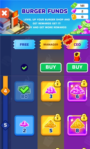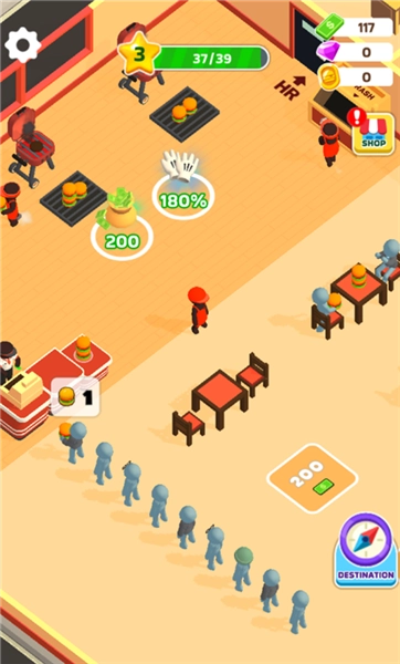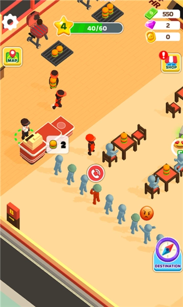快速升级:从基础柜台起步,逐步解锁功能齐全的得来速服务!高效制作美食、迅速响应匆忙的顾客,服务速度越快,顾客满意度就越高,收益也会跟着增加,帮助汉堡店更快地扩张。