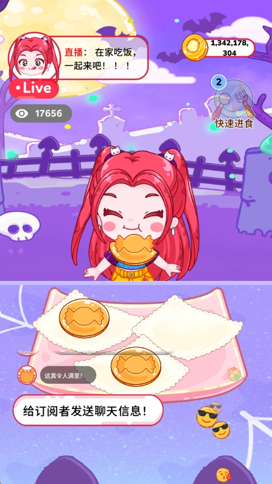 游戏里有不同主题的关卡,玩家需要完成限时进食、制作指定食物这类挑战来通过关卡。顺利通关后,能得到金币、食材,或者直接解锁新的食谱作为奖励。像“万圣节糖果关卡”这样的挑战,就有可能解锁节日限定的食谱。