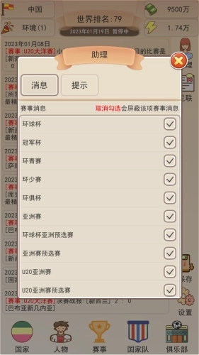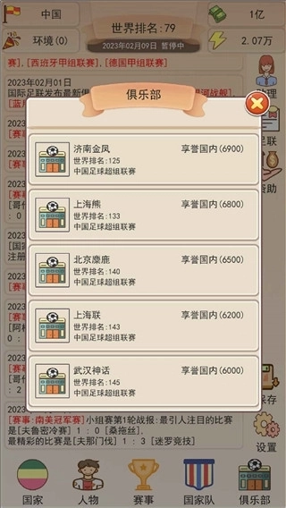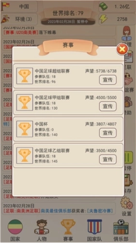2、游戏中会不断的刷新各种赛事和信息,通过各种信息来安排发展路线。