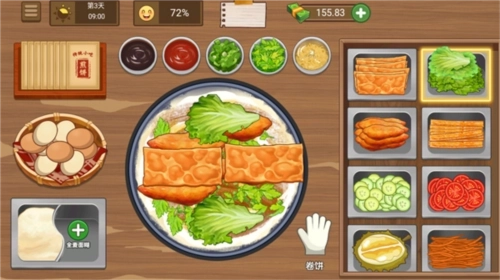 游戏中采用了大量的食材、调料和配方系统,玩家可以通过不断的获得新的食材和尝试不同的搭配来制作出各种美味的煎饼,从而吸引更多的顾客和提高评分;