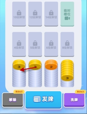 4、当没有能够移动的硬币时,就可以点击发牌来补充硬币了。
