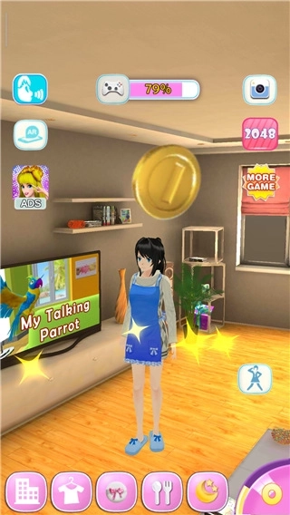 会说话的女朋友中文版是一款制作精良的模拟生活,玩家在游戏里拥有一个可爱的女友,每天和她生活在一起,让你忘记所有的烦恼。会说话的女朋友重复您说的每句话,让她成为您的密友!享受女孩带给您的欢笑与幸福!在游戏场景中,女孩可以自由移动并探索整个房间。当女孩不开心时,可以和女孩一起玩。当女孩饥饿时,给女孩喂食。当女孩困了时,让女孩睡觉。
