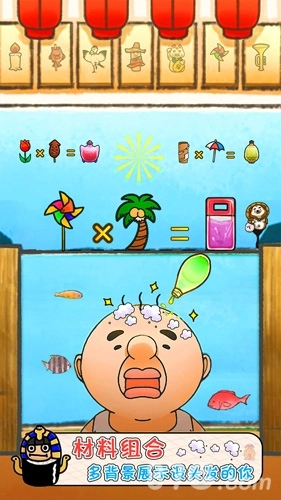 各种材料随心组合,一定要有效果,帮助大叔长出头发,这样才算完成任务!