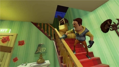 制作组曾经大肆宣扬过邻居的AI是极其先进的,如果仅以邻居的进攻性来看,所言非虚。一丁点的风吹草动都可以引起邻居的察觉,哪怕你只是躲在一个储物间里瑟瑟发抖,邻居有的时候也会找到你,简直如有顺风耳千里眼加持一般。当然,玩家也可以反过来利用这一点,利用小道具声东击西,将邻居引开,不过时间并不长。若是玩家过于依赖使用同一种方法,邻居会使出针对性的对策来埋伏玩家——比如玩家喜欢从前门突破,那么下一次前门的屋檐上可能会设置水桶陷阱;倘若你青睐从后院偷偷摸摸行动,那么可能下一次翻进去的时候等待着你的就是一个捕兽夹。总之,具有一定学习性的AI的确会迫使玩家使用不同的策略,给游戏提供了更多玩法深度。