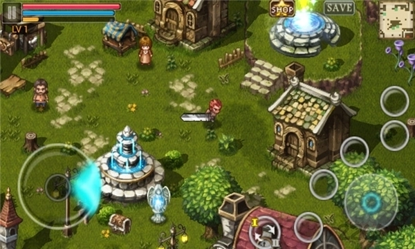 3.游戏的操作系统采用的是虚拟按键的方式,左下角是方向键,右边是快捷键,那个蓝色的便是确定和攻击。