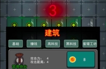 3、升级炮塔,提高战斗力,不断清除邪灵,保护宿舍里的人