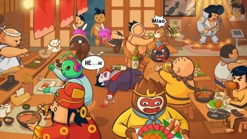 游戏如其名,“胖”与“吃”贯穿于整个游戏,是一款非常“谦让”的游戏呢。正所谓,你胖你先吃,我瘦我先撤。游戏有“同屏对战”、“好友对战”、“吃货大赛(排位赛)”等多种模式可供胖友挑战,提供了如孙悟空、牛郎夫妇、如花等搞怪的角色供胖友选择,选中自己心仪的角色进入游戏,便要开始一场“你死我活”的美食大争夺。但是!这些辛辛苦苦抢到的美食可不是用来吃的,胖友需要迅速把它喂到对方嘴里,让对方迅速发胖。当角色吃到一定量的时候,便会撑爆肚皮口吐白沫,游戏就宣告结束。