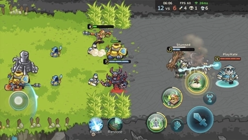 3、游戏采用水平地图单程推塔模式,摧毁敌人基地并获胜。它还拥有MOBA核心系统,如英雄级增长和装备。
