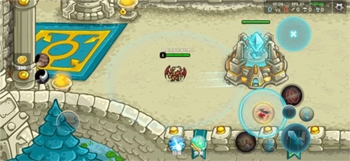 2、游戏玩法为横向地图单路推塔模式,摧毁敌?基地获胜。