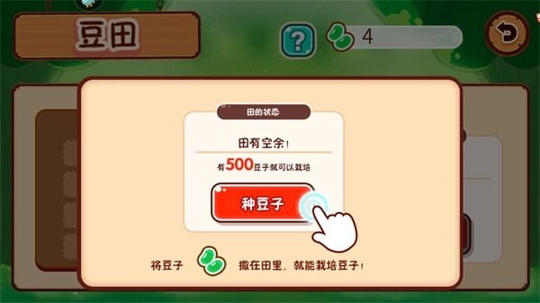 6、当我们有500的豆子时,就可以将豆子洒在田里,从而来获得更多的豆子。