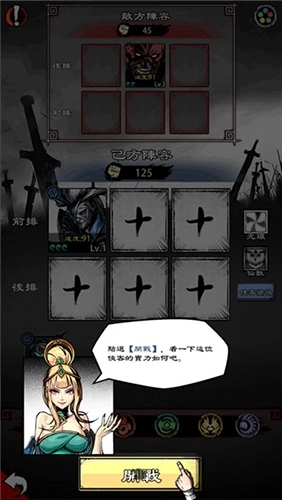 4、选择要开战的角色阵容,分为前排和后排两排,玩家可跟随敌方阵容进行选择;