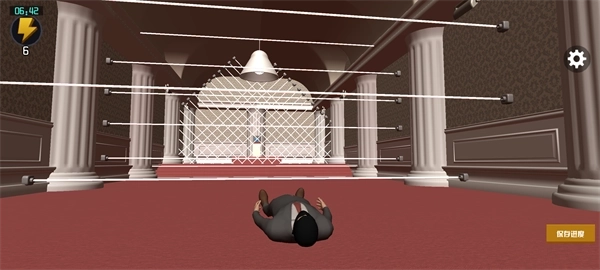 玩家需要操作角色的前进和各种姿势,不能碰到红色的警戒线,惊险刺激,各种肢体动作都十分的有趣,玩家只需通过手指灵活的操作点击即可,通过出神入化的操作将自己变成神偷,上演电影中的各种惊险情节,但路途中总是充满各种阻碍的,你需要调整每个身体的角度和力量方向,避开所有的警戒线。