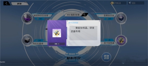 史诗级武器:钢熔体仿生金属*30圣殿钛合金*30玮氏石墨烯*30亚卡钛核晶*30。