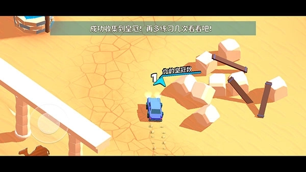 1、打开欢乐赛车大战最新版游戏后,先去新人训练营练一练,这里的目标是和敌人抢夺皇冠。