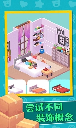 3、在模拟的房间中不断体验搬家和装饰带来的乐趣,动手设计属于你自己的房间。