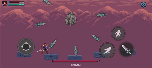 古代石头人是我最容易翻车的BOSS,稍不注意就会掉下去。最近更新后,它的击退效果似乎被削弱了,但每次攻击后的停留位置变得不太稳定。从每次掉下去时它的反应能看出,放激光时会追踪玩家位置——以前我会故意跳起,让它停在较高处放激光,自己在下方全力输出。它的难点在于后期的移动发散攻击,看似靠运气难躲,其实用翻滚就能避开。要注意右边第二个平台太高,没法从中间平台翻滚过去,所以左边相对更安全。