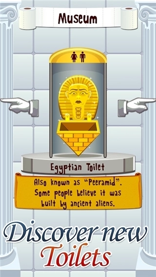不要让任何人告诉你,在厕所里玩这么多的乐趣是浪费时间!毕竟,你将获得钥匙,以解锁厕所中的历史遗迹博物馆,如传说中的埃及小便池和复杂的TimeMachineToilet!
