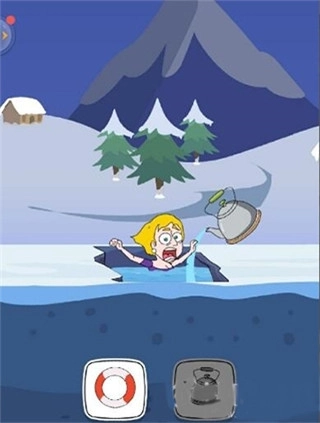 第2场景:小姐姐掉进了一个冰窟窿,选择热水壶,往里面倒热水,然后小姐姐洗个热水澡出来
