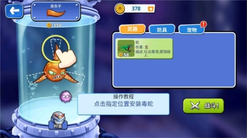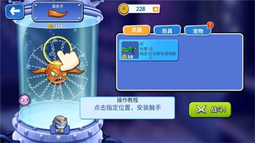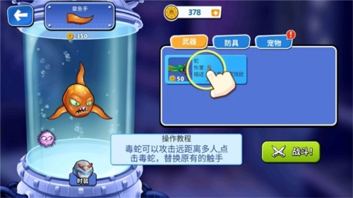 另外,还能替换触手,像毒蛇、蟹脚之类都可以,其中毒蛇能够对远距离的多个目标发起攻击,点击毒蛇即可替换掉原来的触手!