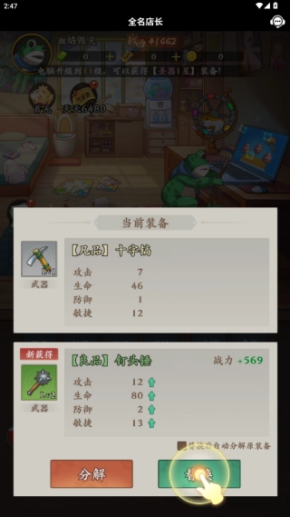 进入游戏后,先挑选你喜欢的动物角色形象——像身手敏捷的青蛙、沉稳可靠的蜗牛或是时尚个性的斑马都可以,接着领取开局的丰厚福利,就能迅速开启你的店铺经营与冒险旅程啦。