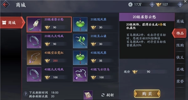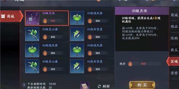 跟大家聊聊这个商城,这里可以购买20、40级不同品质的装备。说到品质,品质越高的随机的属性条就越多,属性也就更好。