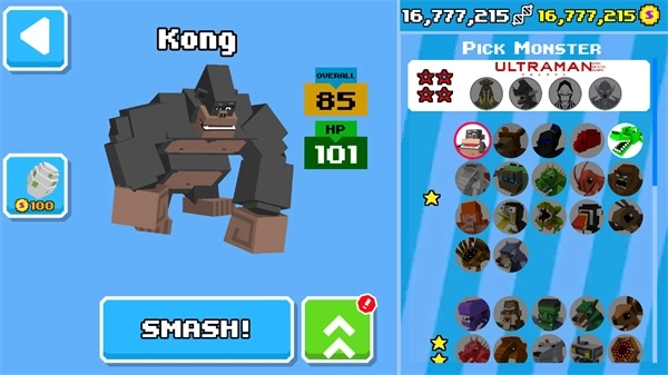 1、粉碎城市游戏中还为玩家提供了数百种不同造型的怪物角色,例如金刚,哥斯拉等这些众所周知的、走到哪儿哪儿塌的怪兽们以供玩家选择。