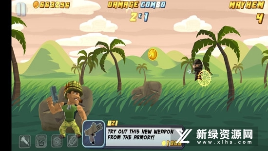 游戏里的关卡并非总是要求玩家用手指精准点中敌人头部,有些关卡需要玩家持续射击,同时操控主角跳跃避开障碍。
