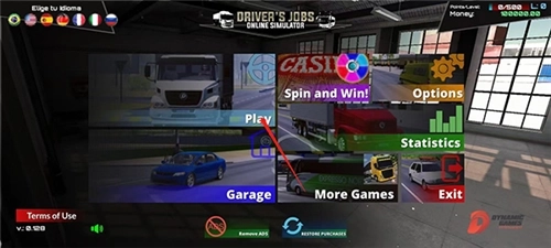 1、打开司机工作在线模拟器游戏,进入游戏主界面,选择【Garage】车库选项,