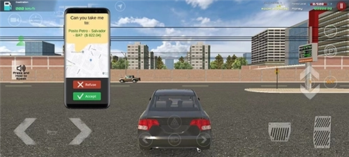7、进入游戏后,会接到一个任务,点击【Accept】同意,左边的两个按钮是控制车辆的方向,右下方两个是刹车和油门,