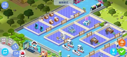 萌趣医院和一般的经营游戏不同,它除了有风格各异的医生,不一样的经营策略,它还有一个超大的地图,地图上也有着各种各样的建筑,当然无论是建筑内还是建筑外都是可以让玩家自由发挥随意装饰,不同的玩家可以装饰出不一样的风格。