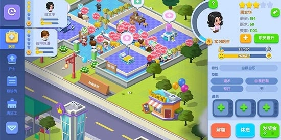 超大地图场景,自由扩建、摆设科室、装饰装潢,喜欢暗黑风格的医院?还是充满少女心的可爱风格?想建造一个医院后花园?还是高逼格的员工休息室?这些都由你创造!只有想不到,没有做不到!