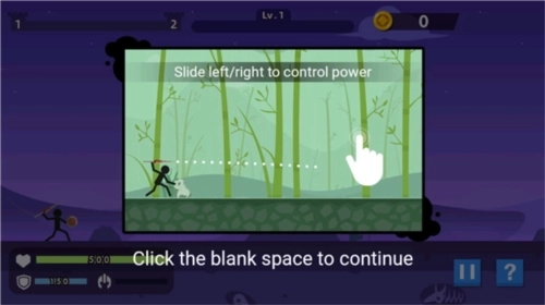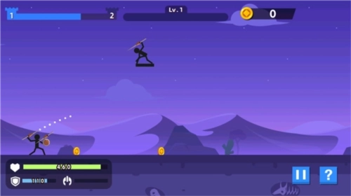 1、火柴人神射手滑动屏幕射出手中的武器,滑得越快敌人越菜。