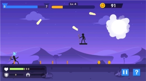 8、如图这种手持法杖的火柴人发射的是火球,火球落到身上会让你的生命力下降,你手中的武器也可以打破火球;