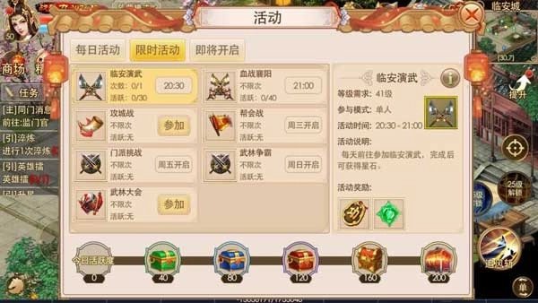 20:30分开启,21:00结束,战斗时间为30分钟。