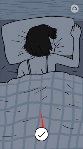 9、一天的时光已经落幕,快些入眠去拥抱明天的美好吧,点击小对勾就能顺利通过这一关啦。