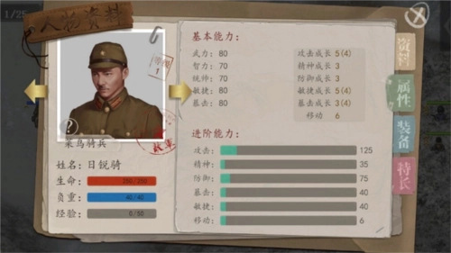 鬼子血量平均在600—700之间,攻防500左右,数量比较多,所以我军最好利用地理条件,卡住位置,开局吃颗攻击果子,利用机枪兵高攻高防守住路口反击敌人,撑住第一回合攻击后,再吃经验果,这样就把血和蓝回满,继续反击敌人。