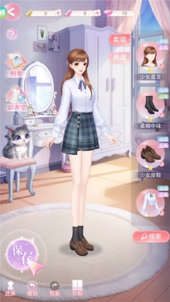4、在这里,有各种各样的服饰、装饰可以佩戴,也有完整的套装可以穿戴。在玩家搭配完成后,即可点击保存。
