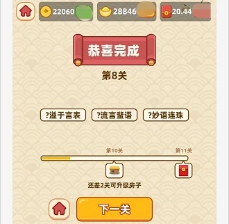 2、关卡模式设计玩法精彩,经典的成语答题操作方式,一系列任务挑战组成,成语答题,益智增加成语知识,逐步解锁更难关卡;